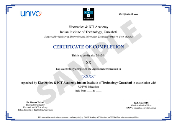 Upon successful completion of the program, receive a joint certification from E&ICT Academy, IIT Guwahati and UNIVO Education. This prestigious certification is recognized by industry leaders, enhancing your credibility and career prospects.